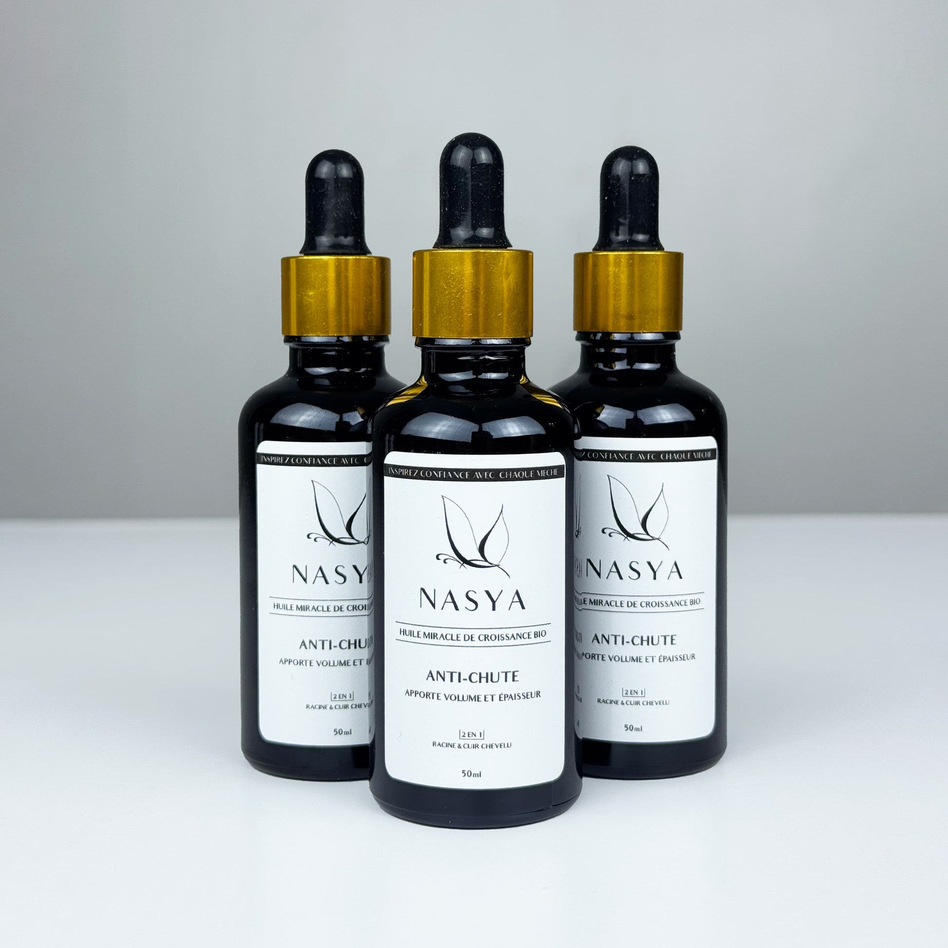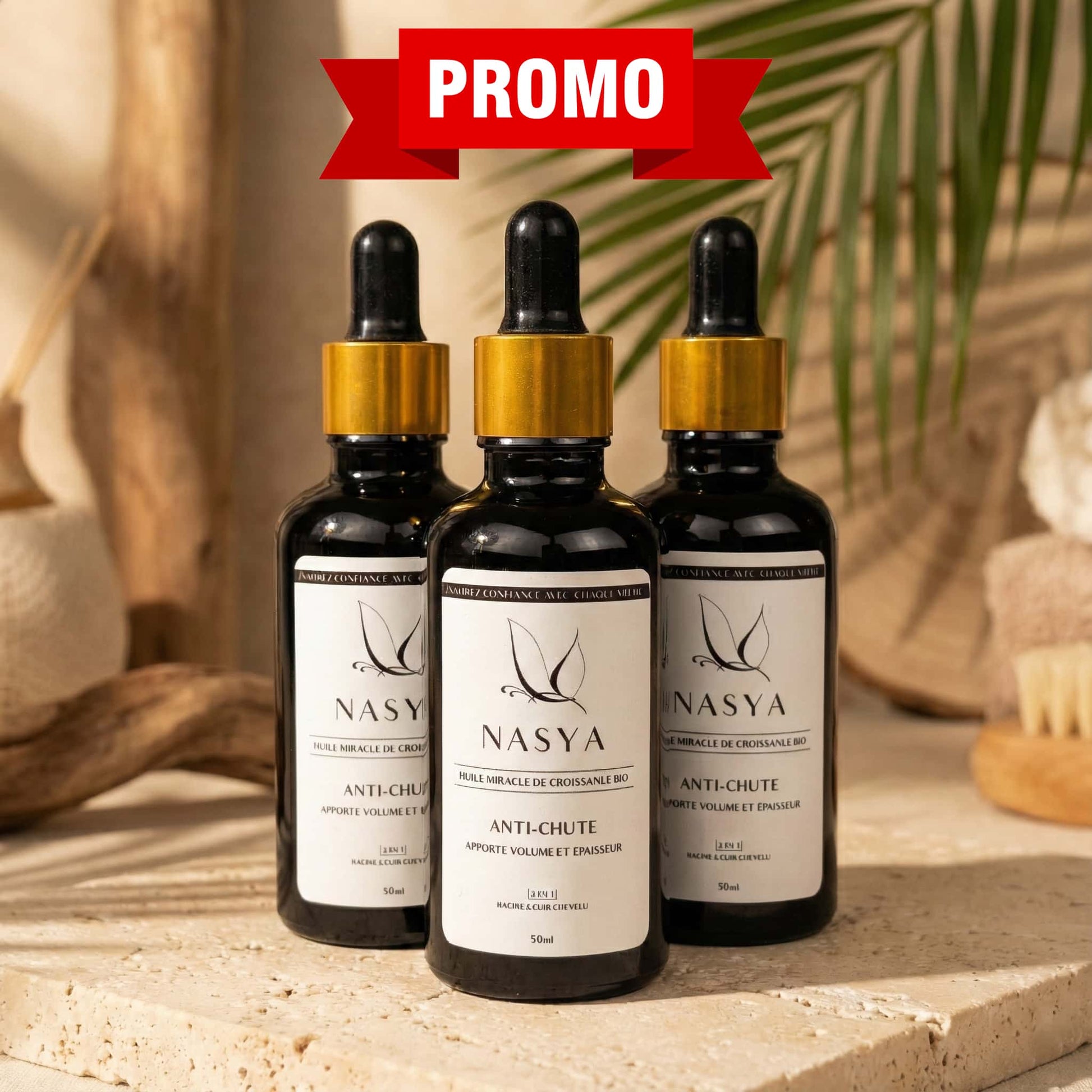 Nous sommes également fans des offres avantageuses ! Bénéficiez de notre "Coffret Premium de Nasya" et économisez sur nos trois unités de Miracle de Croissance Bio lorsque vous en achetez deux. Une opportunité à ne pas manquer pour des cheveux magnifiques et en pleine santé !